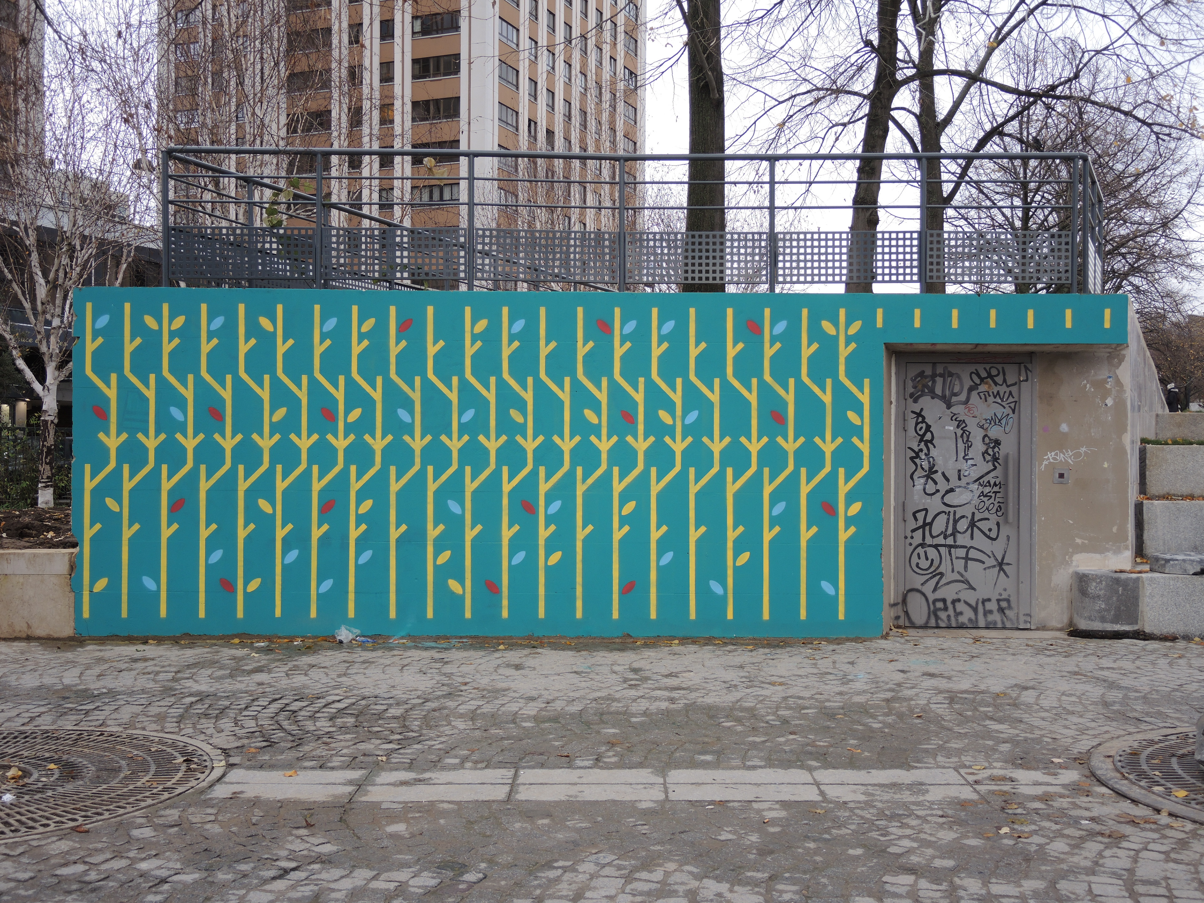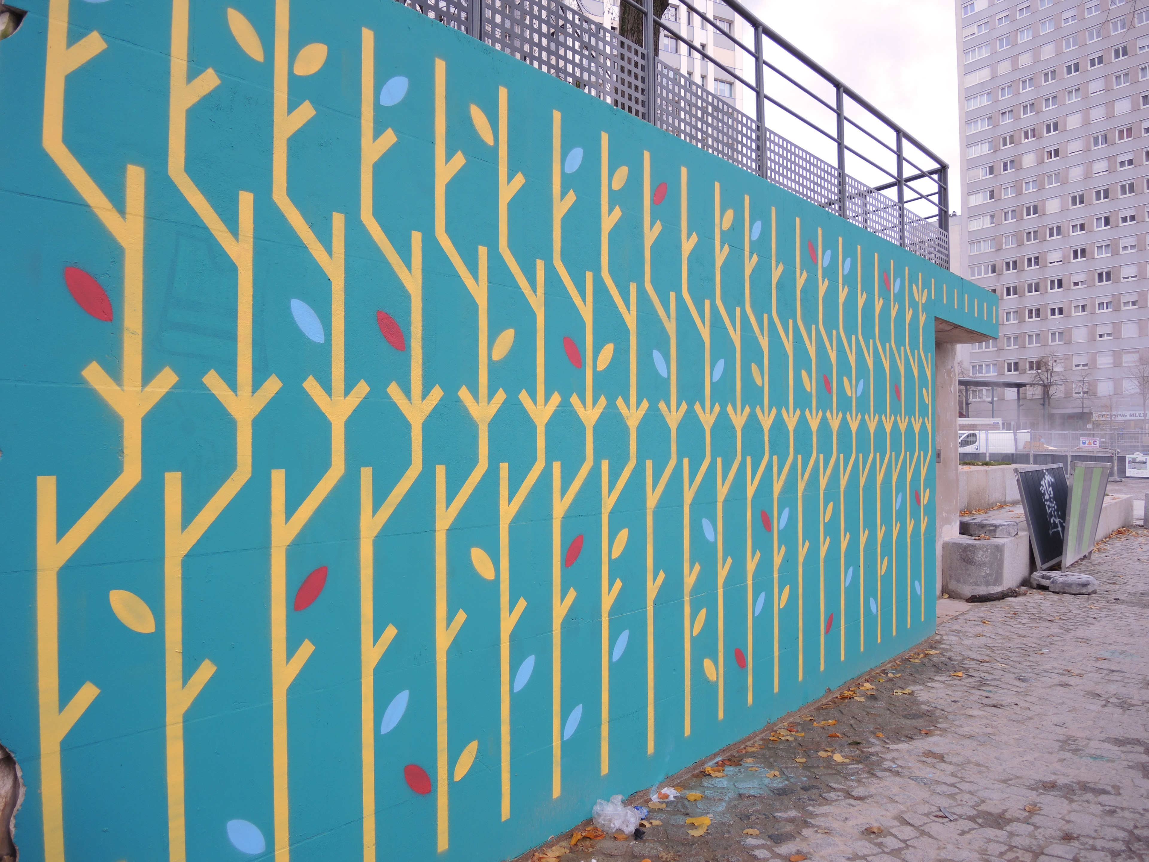 in the renovation and embellishment of the Place des Fêtes by creating 2 murals on the theme of nature.