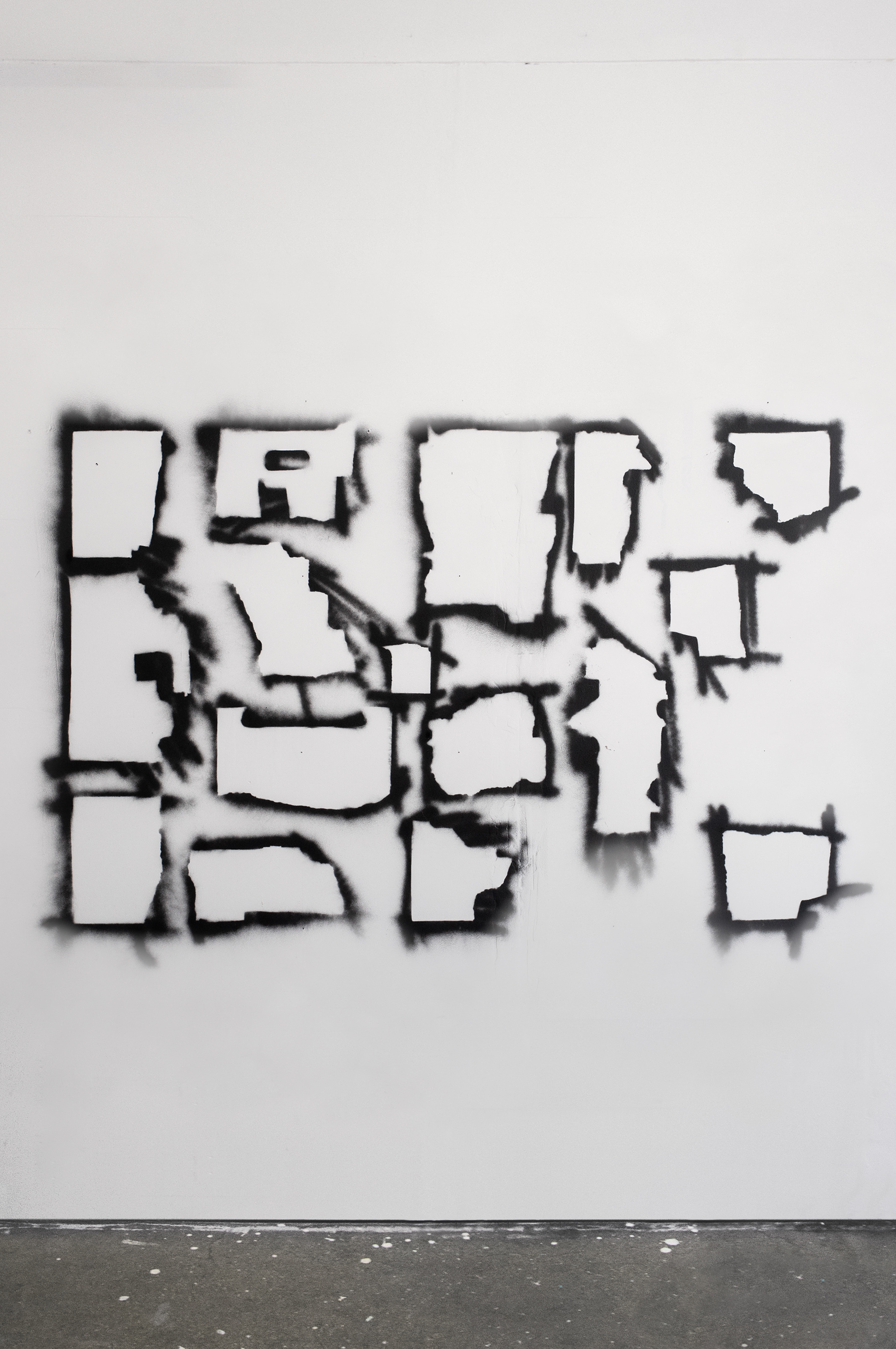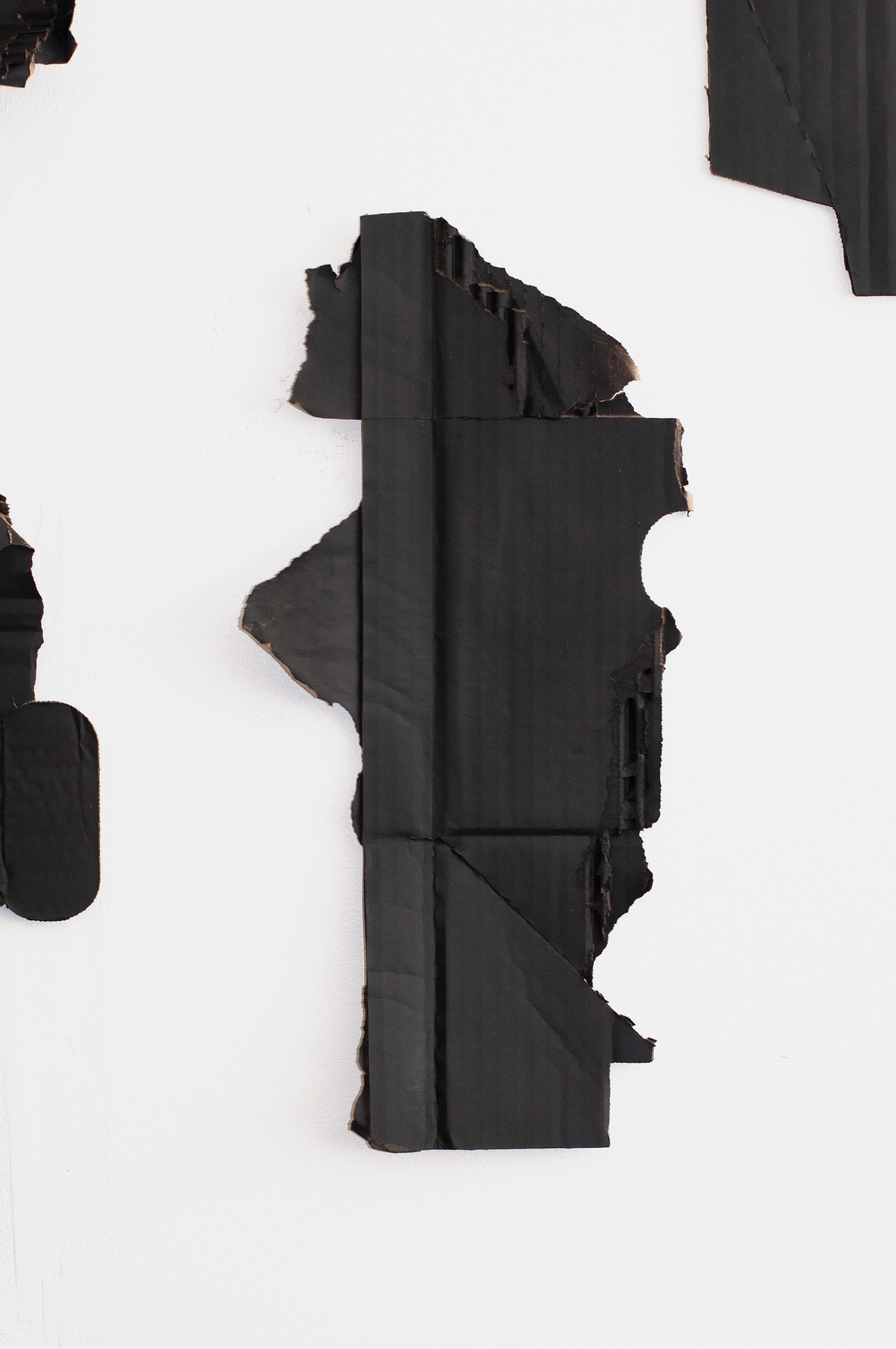 Torn cardboard, black spray paint